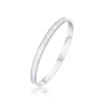 Sterling Silver 6mm Flat Bangle with Diamond Cut Parallel Marquise Diamond Pattern